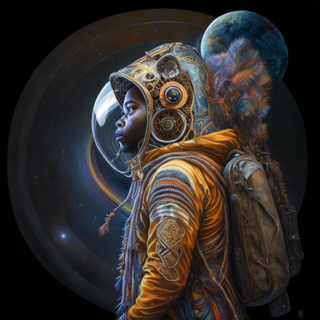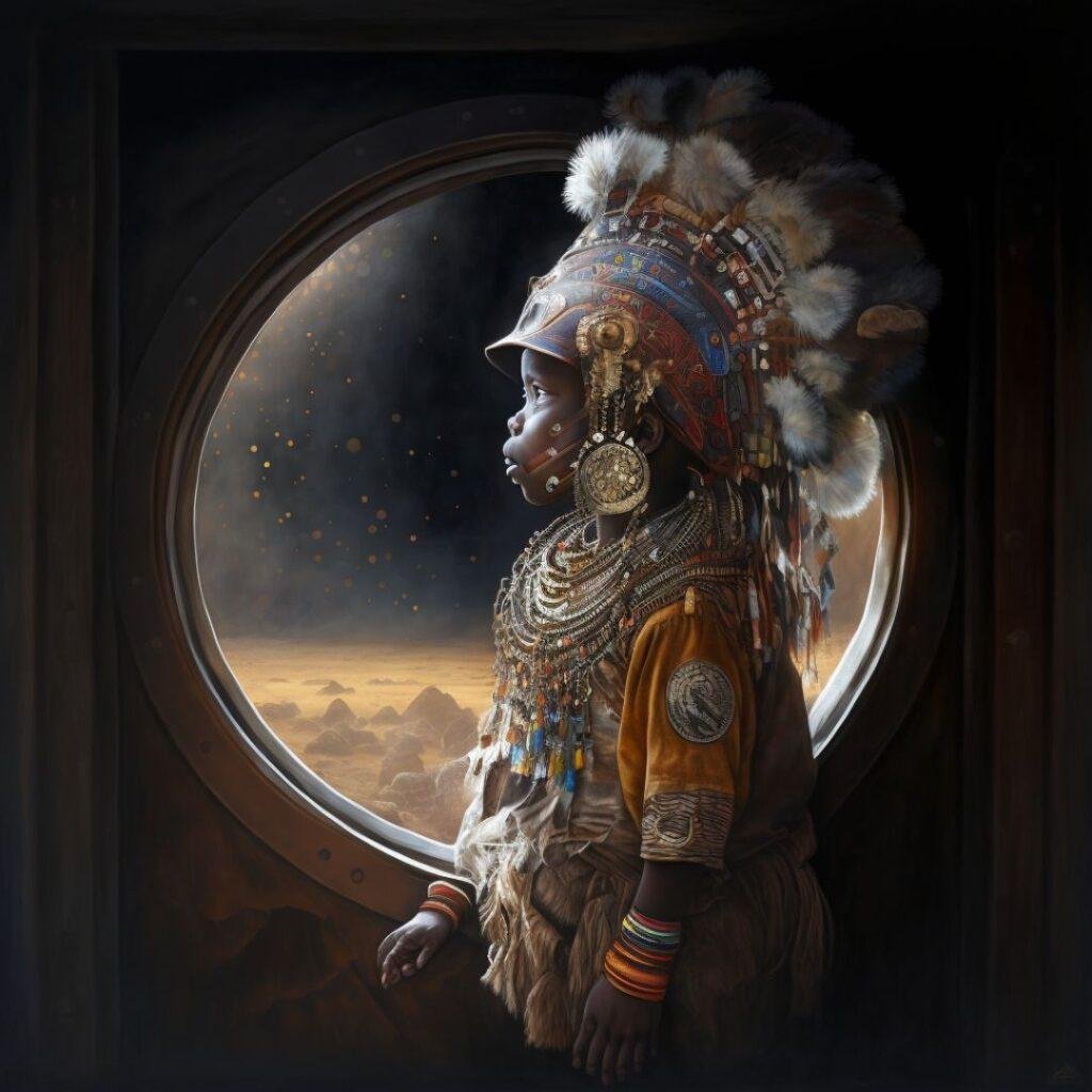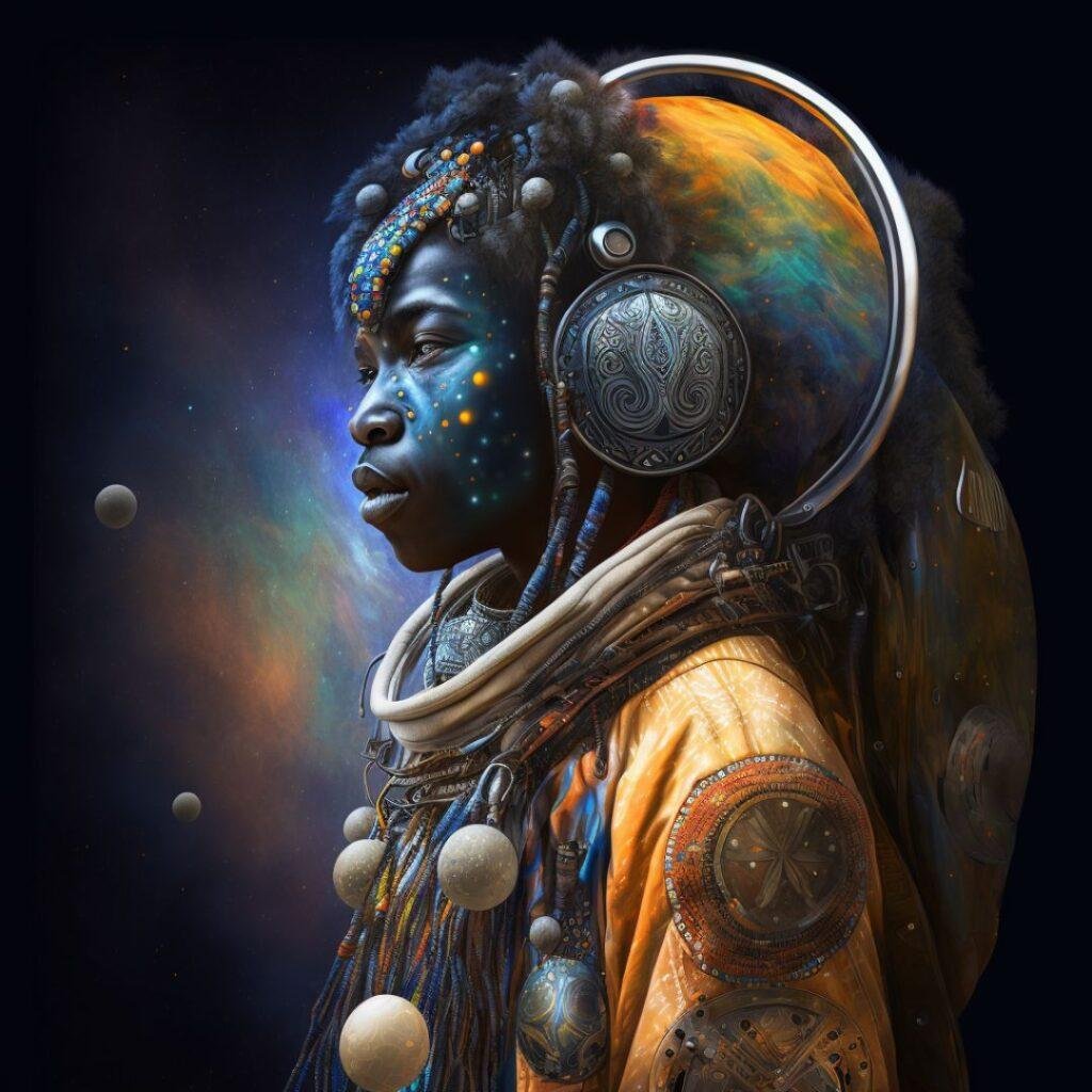 Text-to-Image Generation: Midjourney AI was utilized to create concept art and a collection of 50 artworks based on carefully crafted prompts centered around futuristic interpretations of Sangomas, such as “Sangoma on a Hoverboard.” This process transformed textual descriptions into visual representations that blend traditional African spirituality with science fiction elements.