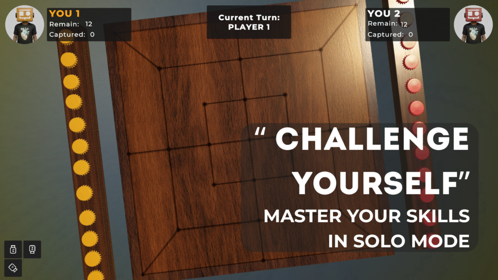 Pass-and-Play: A local multiplayer mode on a single device, digitally replicating the real-world, social tradition of two people challenging each other over a shared board.